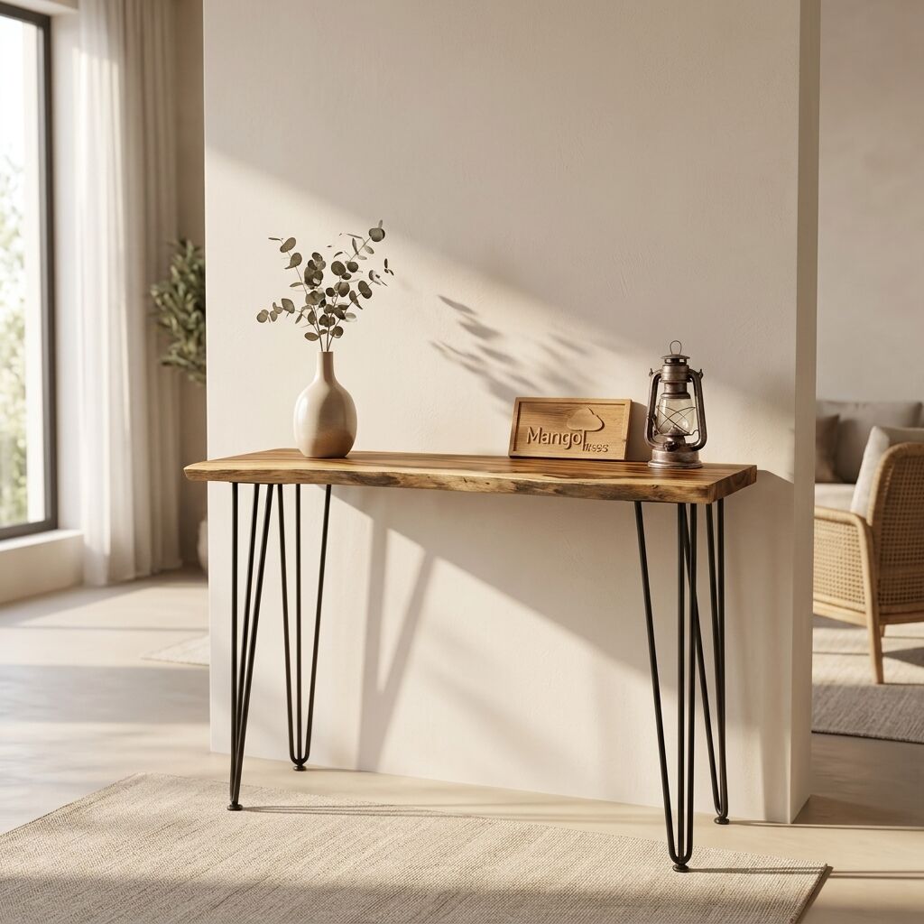 "Crestwood" Live Edge Raintree Wood Console Table/Hallway Table