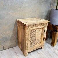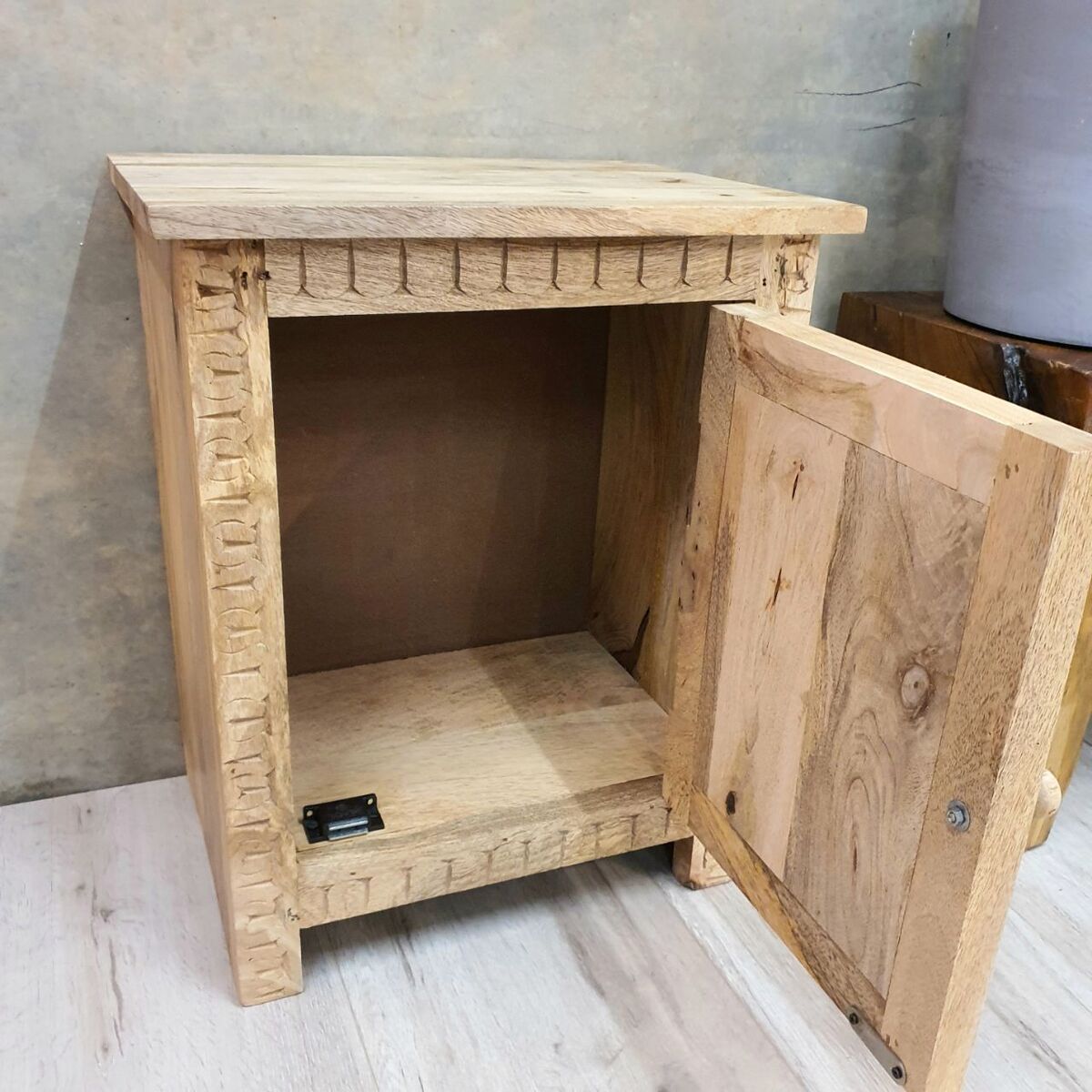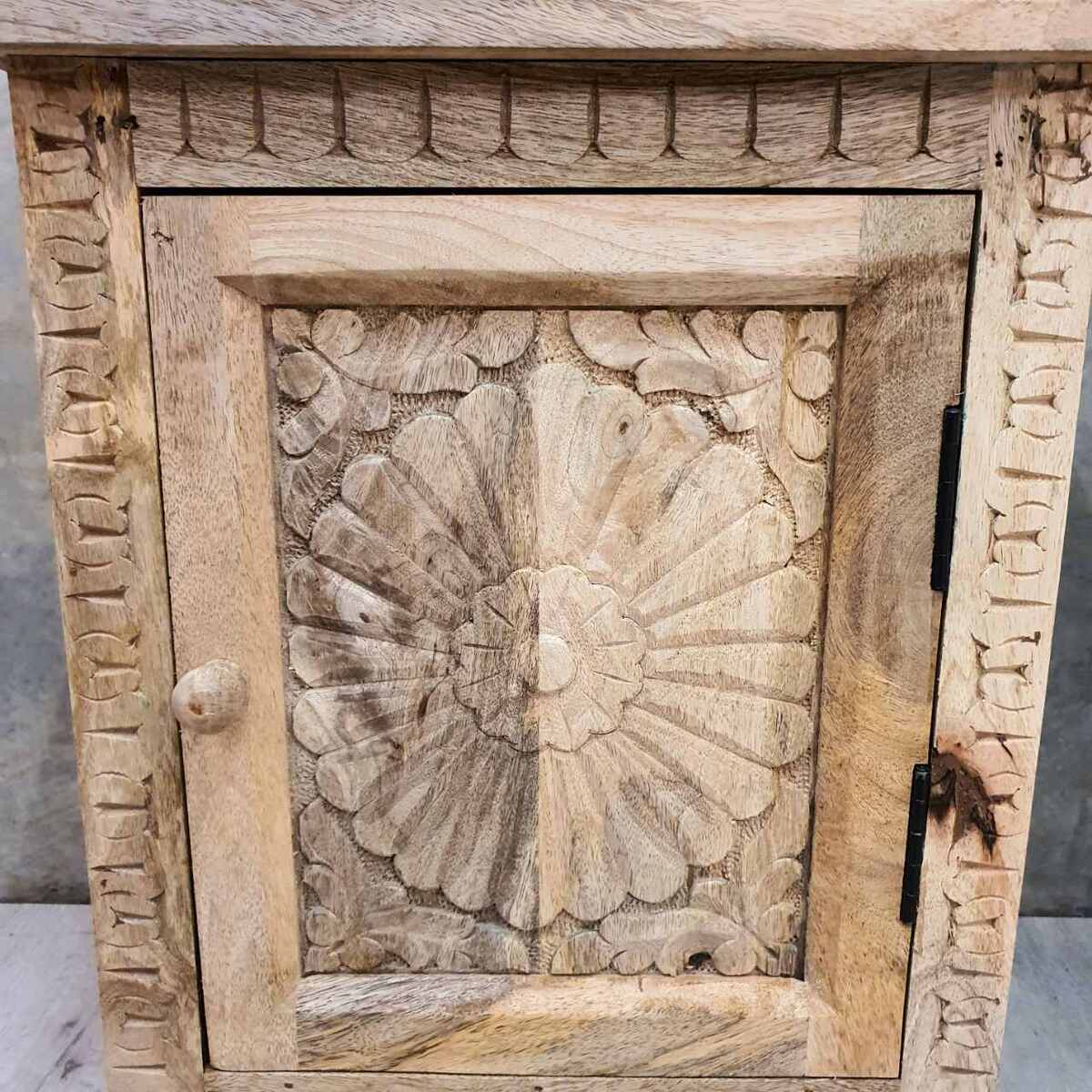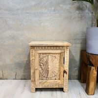 The "Bethany" bedside table will make a timeless addition to your interior decor. The side table is made of solid mango wood and is highly stable and durable. The sturdy top is ideal for placing your glasses, books, teacups, etc. The nightstand provides storage space for keeping your various items neatly organised. The carved details give the bedside table a touch of elegant charm. This item is already assembled; no assembly is required. Important note: The colours and grains of the wood may vary from piece to piece, making each piece unique and slightly different from the next; the delivery is random.