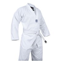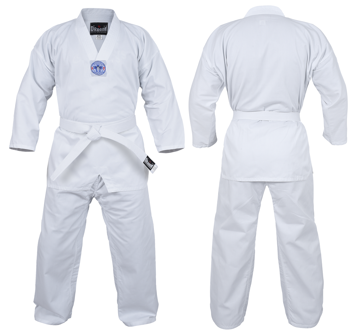 This Dragon lightweight 8oz student Taekwondo uniform is everything you want in an entry level gi. Our exclusive light-weight 8oz Taekwondo uniform puts other brands to shame. These high-quality lightweight student uniforms are made of a durable 8oz cotton/poly material and are built to last with extra stitching in the jacket and pants. Made using 35% cotton and 65% polyester ensures that these Dragon Taekwondo uniforms are soft on the skin, durable and require minimal ironing for day to day club training. Once you give our 8oz lightweight Taekwondo uniforms a try, we know you won't ever want to wear anything else.