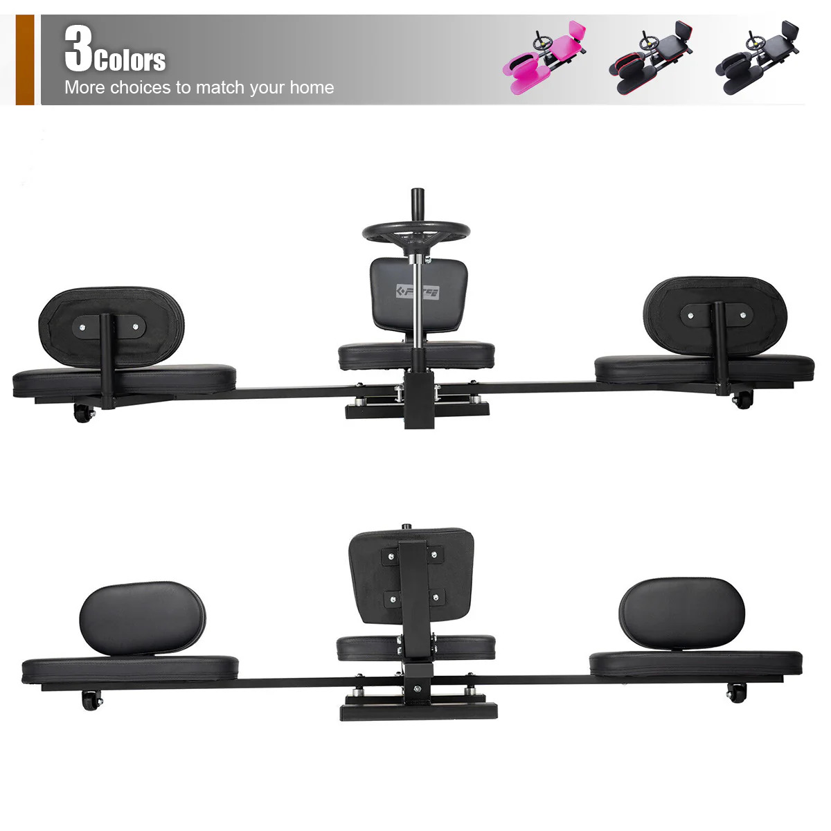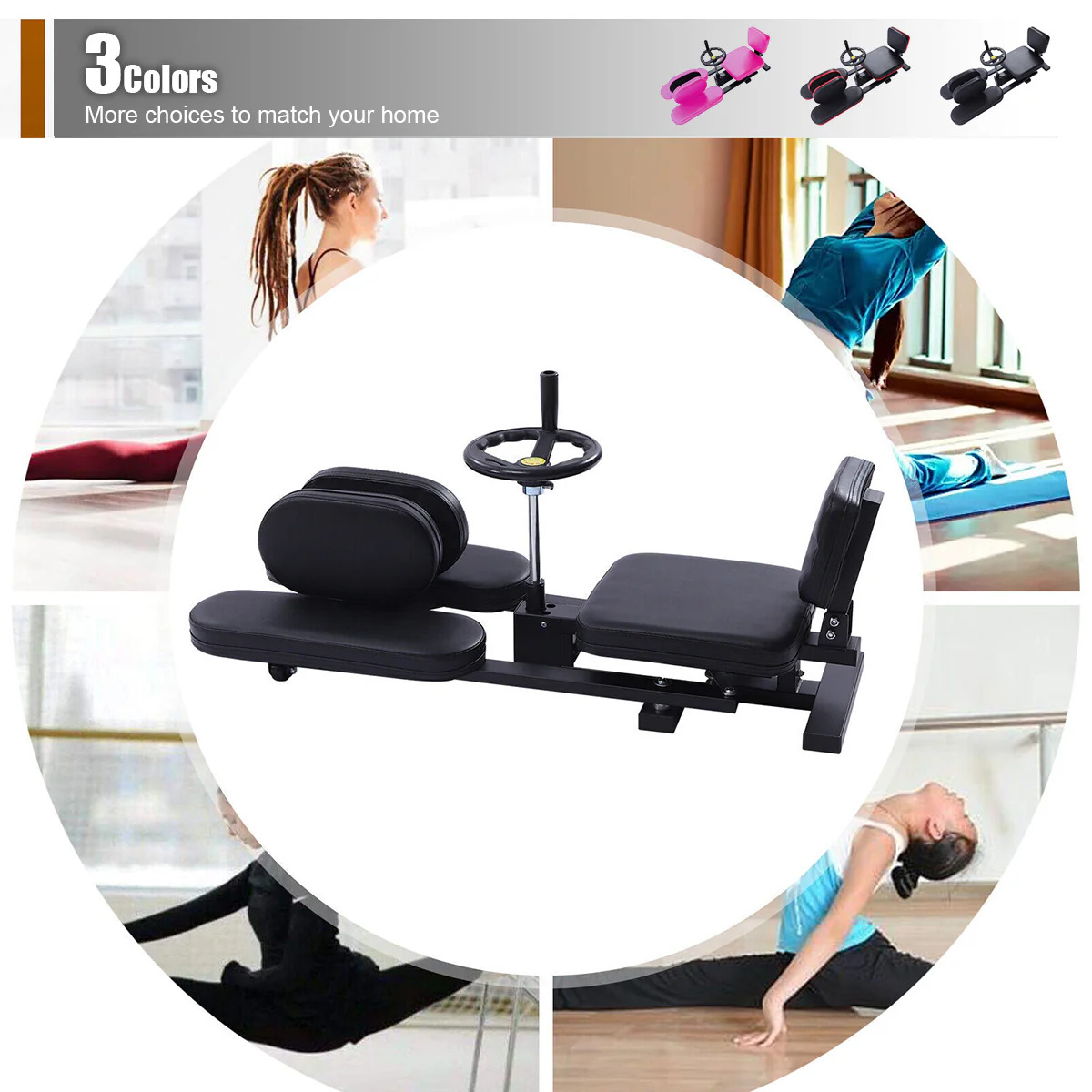 Pro Leg Stretcher with padded footrests, seats, and adjustable back support for comfort. The back pad has two angled positions including a 110 and 105-degree angle, and a smooth-moving wheel guides your legs in place