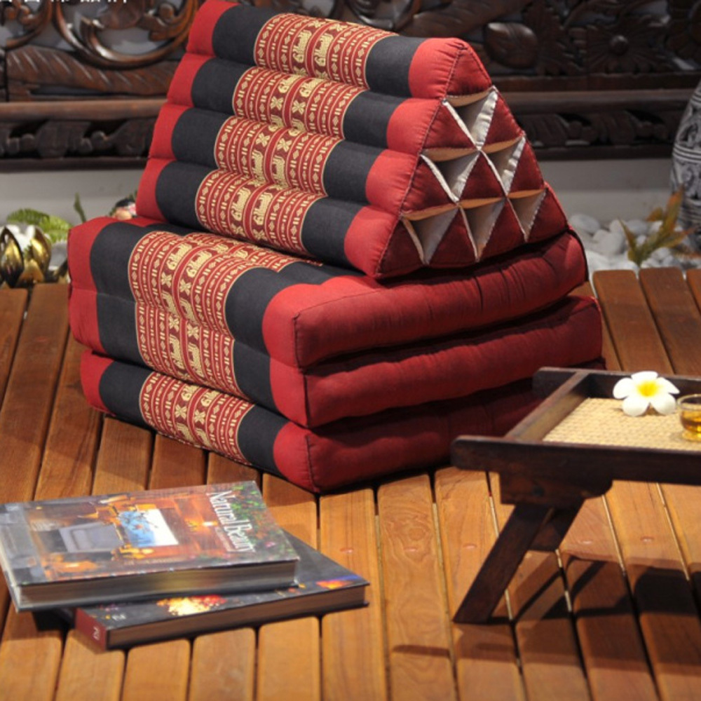 Known as "Mon Sam Lieung" (Triangle Pillow) or "Mon Thai" (Thai Pillow), these pillows are widely used in Thailand. They can serve as low seating for dining, a full-sized daybed, or simply as an addition to enhance the serenity of your home. They're not only beautiful and comfortable but also easy to store.
