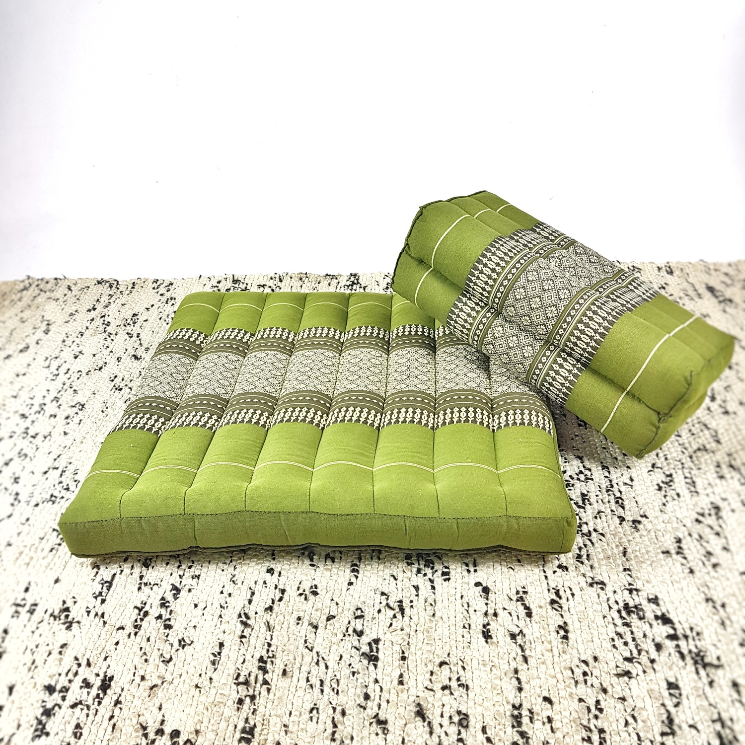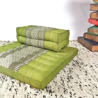Zafu and Zabuton Meditation Cushion Set in Traditional Thai Cotton Fabric, filled with 100% organic kapok fiber.